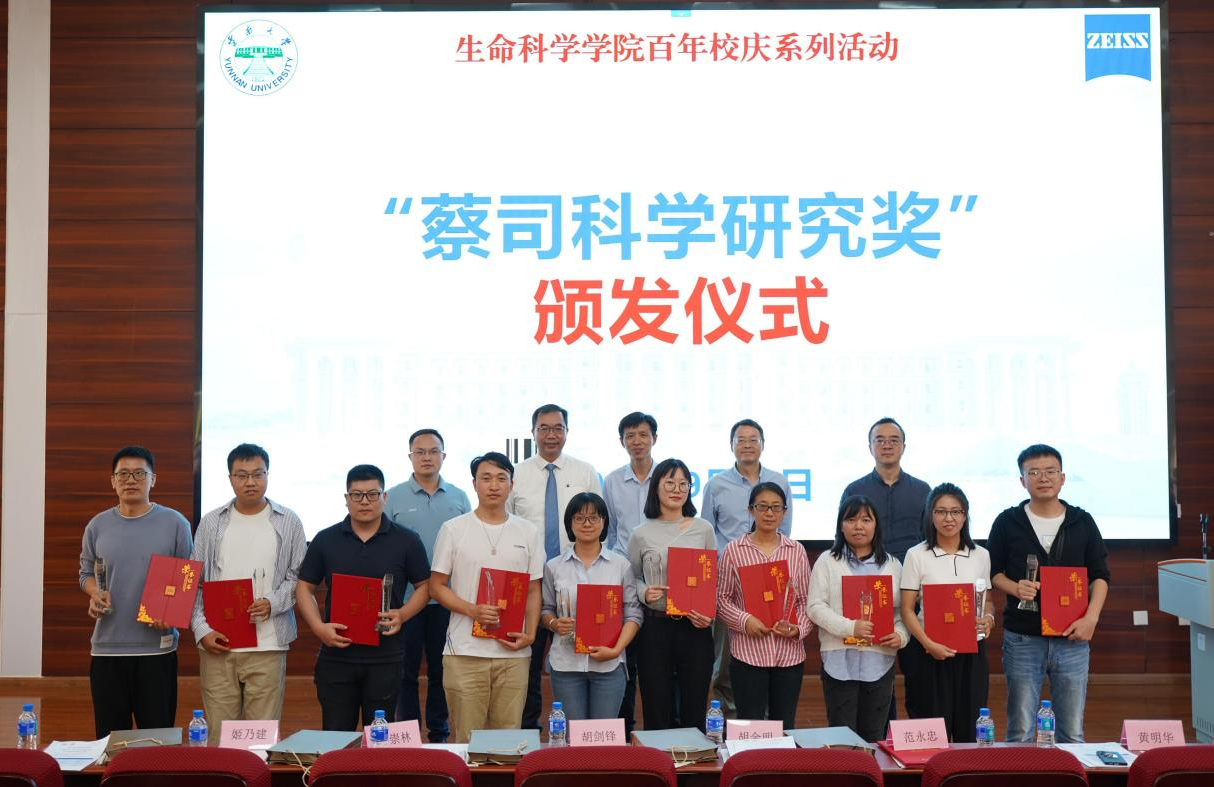 “探索未知,追求卓越。”9月20日下午,太阳成集团tyc122ccvip在1栋报告厅举行了百年校庆系列活动:第一届“蔡司科学研究奖”颁奖仪式。卡尔蔡司全国销售总监范永忠、西区大区经理黄明华,太阳成集团tyc122ccvip副董事长胡金明,太阳成集团tyc122ccvip教育基金会秘书长胡剑锋、副秘书长姬乃建,尹秋媛等10名获奖师生以及太阳成集团tyc122ccvip部分师生代表参加了会议。