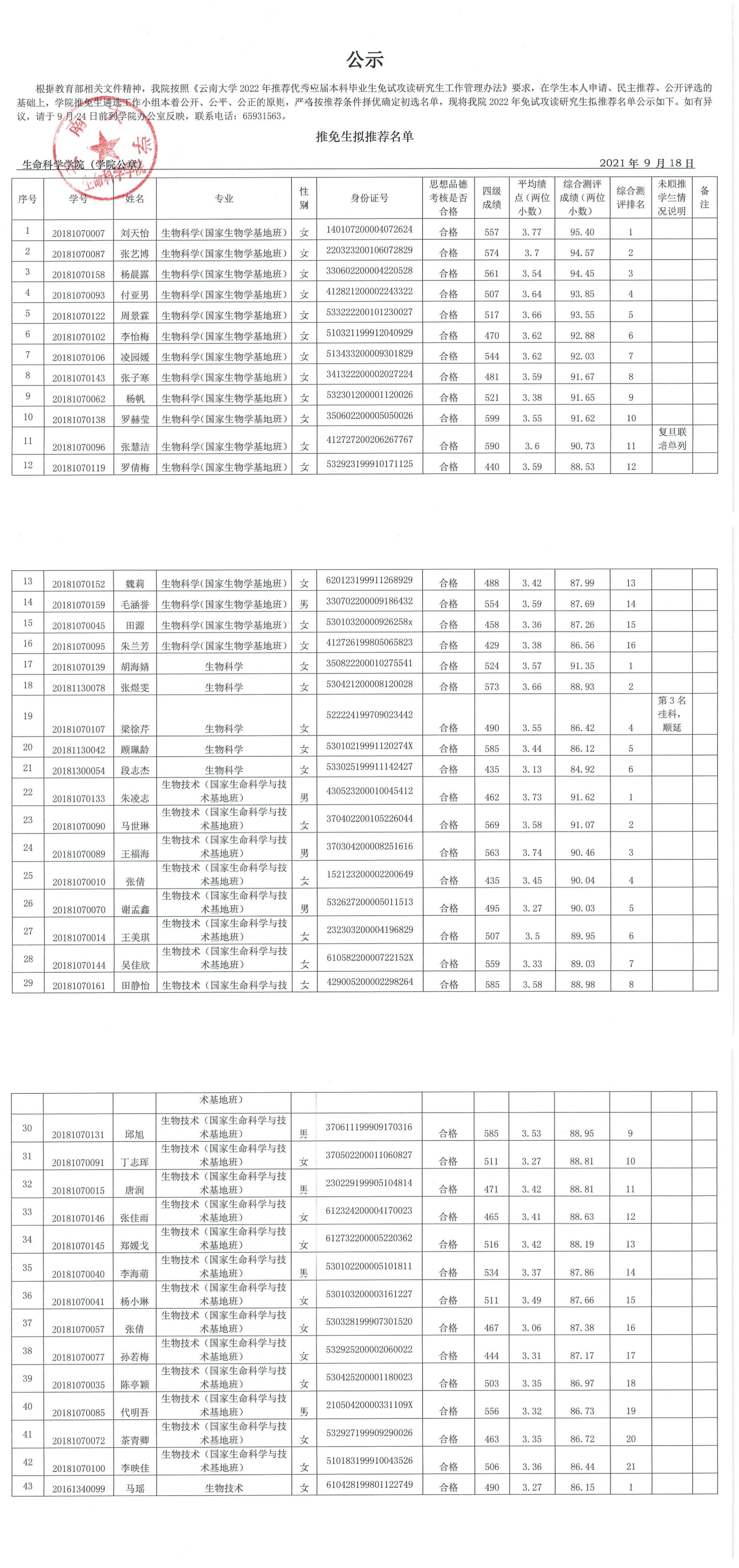 栏目导航 导航 栏目导航 首页 关于我们 太阳成集团tyc122ccvip简介 党政工团 行政办公 新闻通知 太阳成集团tyc122ccvip新闻 通知公告 团队队伍 细胞生物学 生物化学与分子生物学 遗传学 微生物学 生物信息学 进化生物学 当前位置: 首页>>新闻通知>>通知公告>>正文 太阳成集团tyc122ccvip2022年免试攻读研究生拟推荐名单公示 发布时间: 2021年09月22日 09:07 阅读次数: