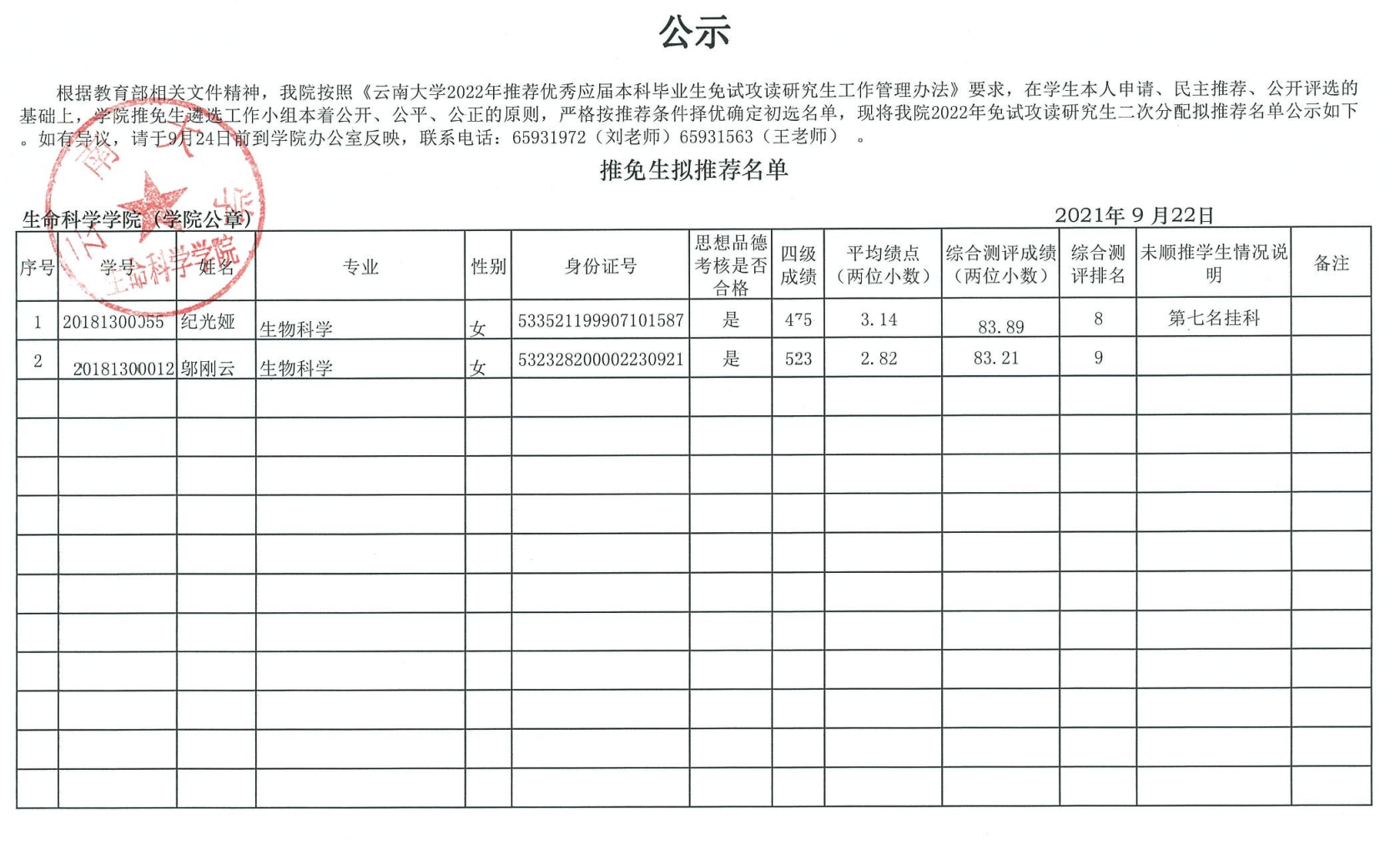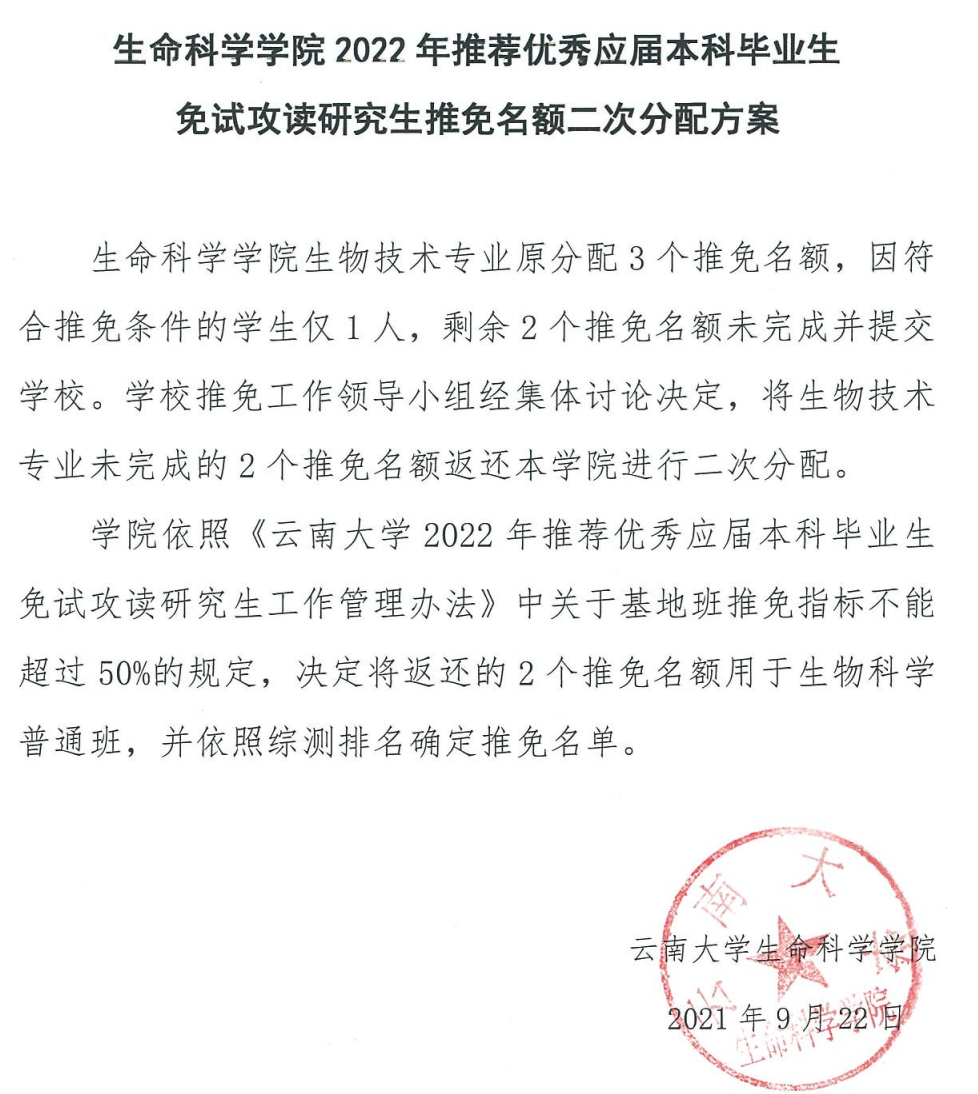 当前位置: 首页>>新闻通知>>通知公告>>正文 太阳成集团tyc122ccvip2022年推荐优秀应届本科毕业生面试攻读研究生推免名额二次分配方案及拟推荐名单 发布时间: 2021年09月22日 15:30 阅读次数:
