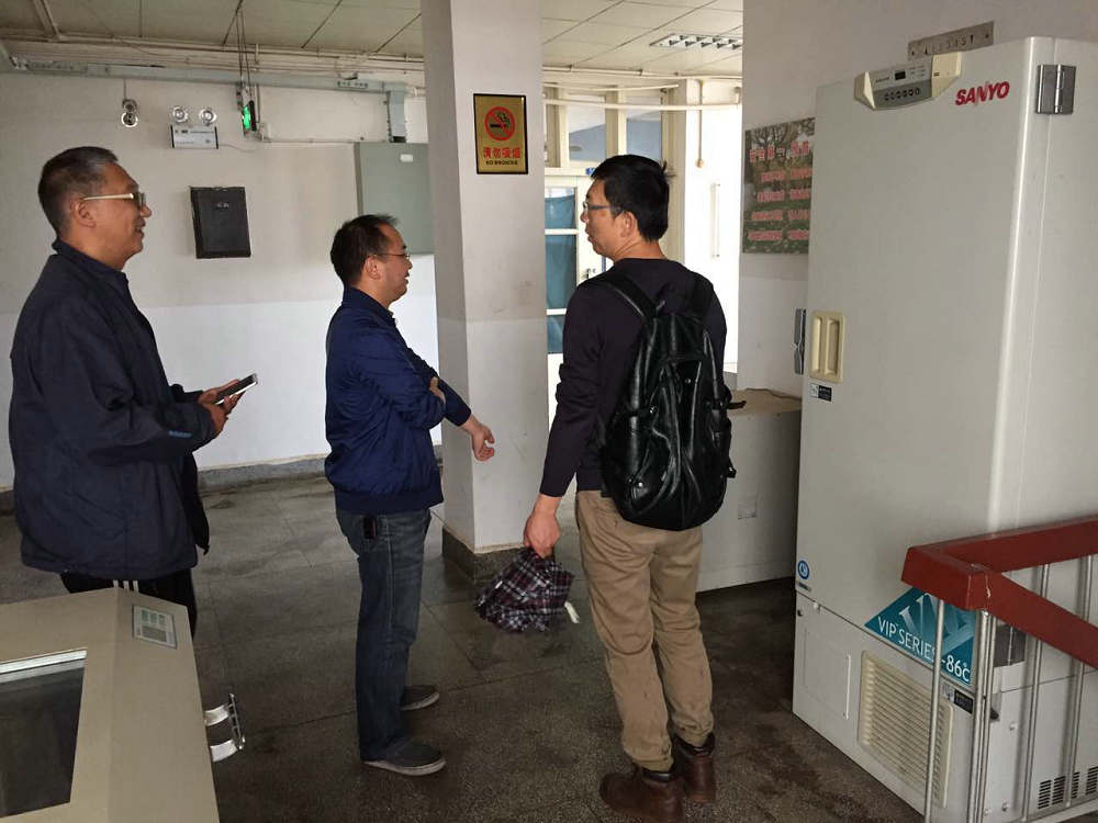 当前位置: 首页>>党群工作>>工作动态>>正文 生科院领导对校本部生物馆和微生物所进行了安全检查 发布时间: 2017年07月04日 09:29 阅读次数: 2017年7月3日上午,公司党委书记廖峻涛和副经理陈善元对校本部生物馆和微生物所的实验室进行了暑假前的安全检查,对实验室内存在的安全隐患进行了认真排查,询问了实验室老师和同学们的假期安排,并对实验室的老师和同学进行了叮嘱,要求他们在暑期间一定要注意用水、用电的安全问题,注意防火、防盗,注意人身安全。同时,陈副经理还对多间实验室室内的环境卫生情况提出了要求,督促他们尽快进行清理。