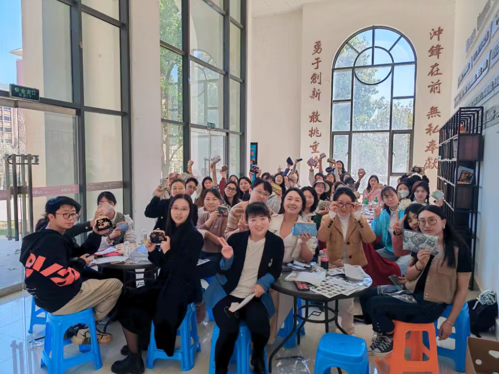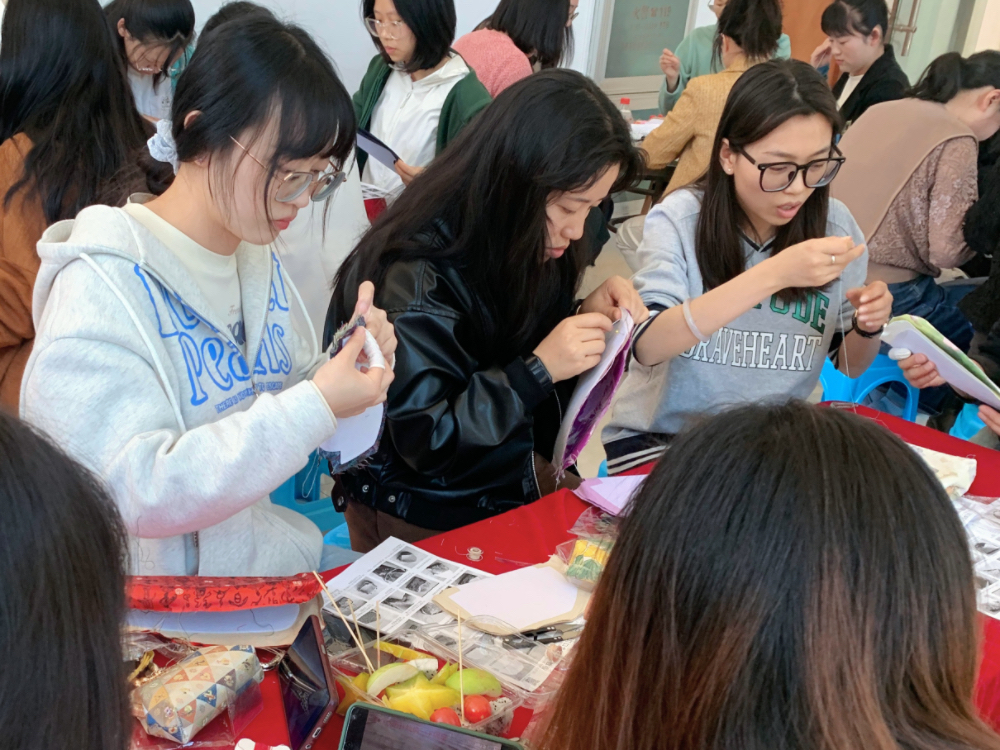 座谈结束后,开展了传统文化体验活动,现场参加活动的老师和同学亲手制作了国风笔袋,在体验手作乐趣的同时,也增进了师生间的交流与沟通,在欢声笑语中迎接节日的到来。