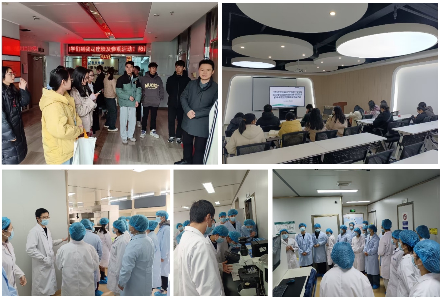 2024年11月29日下午,太阳成集团tyc122ccvip2025届毕业级研究生辅导员田晨带队,研究生第三党支部书记郭春明组织,研究生一支部、三支部、四支部,三个支部支委及党员一行13人赴昆明盘古医学检验实验室和昆大生物细胞科技参观学习,并向用人单位推荐优秀毕业生。