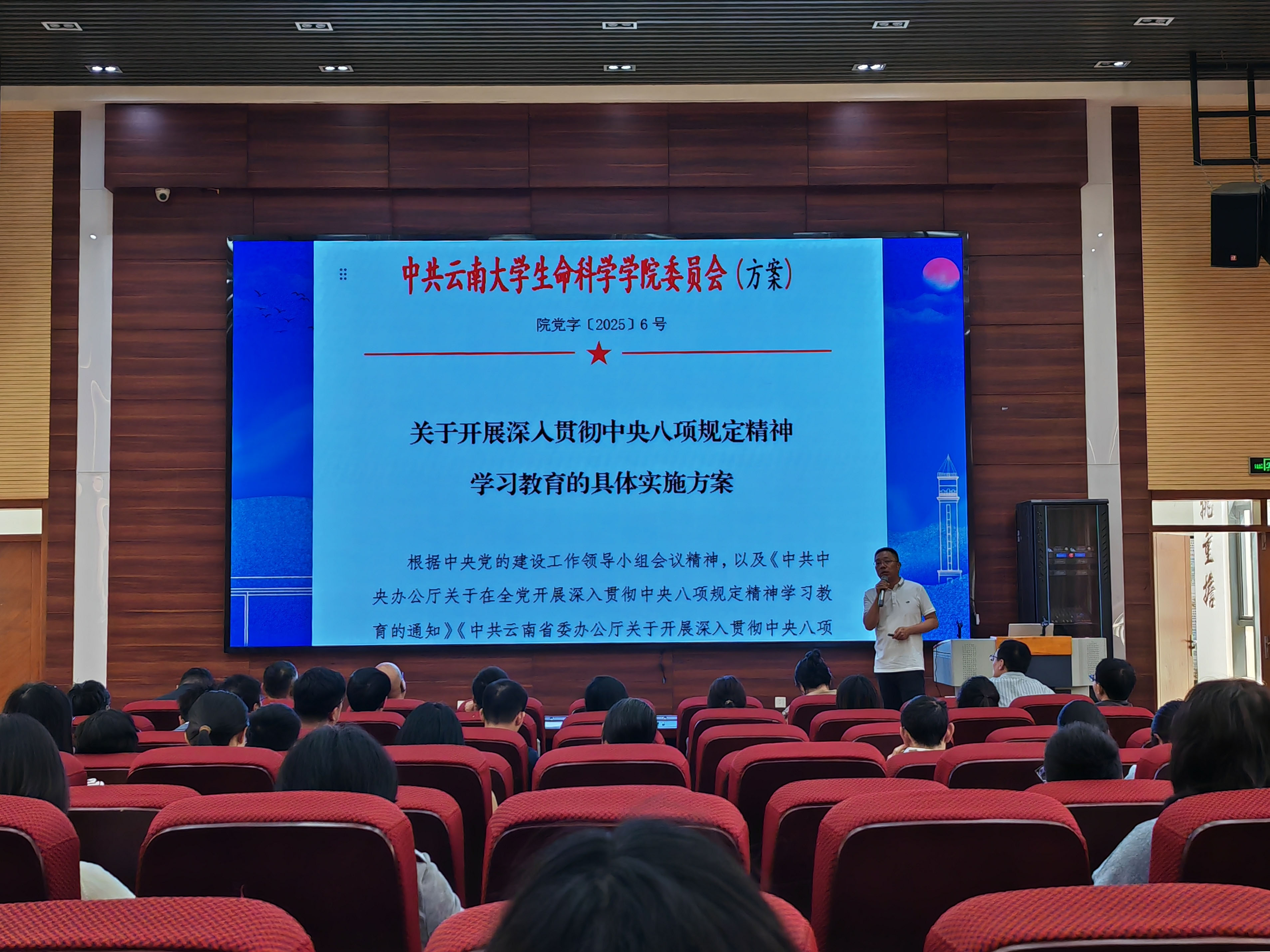 2025年3月25日,太阳成集团tyc122ccvip党委组织召开了“八项规定”学习教育会,深入学习贯彻落实中央八项规定精神,进一步加强公司党风廉政建设,规范教职工行为。院党委书记包崇许同志主持会议,太阳成集团tyc122ccvip、云南省生物资源国家重点实验室、生物医药研究院全体教职工参会。