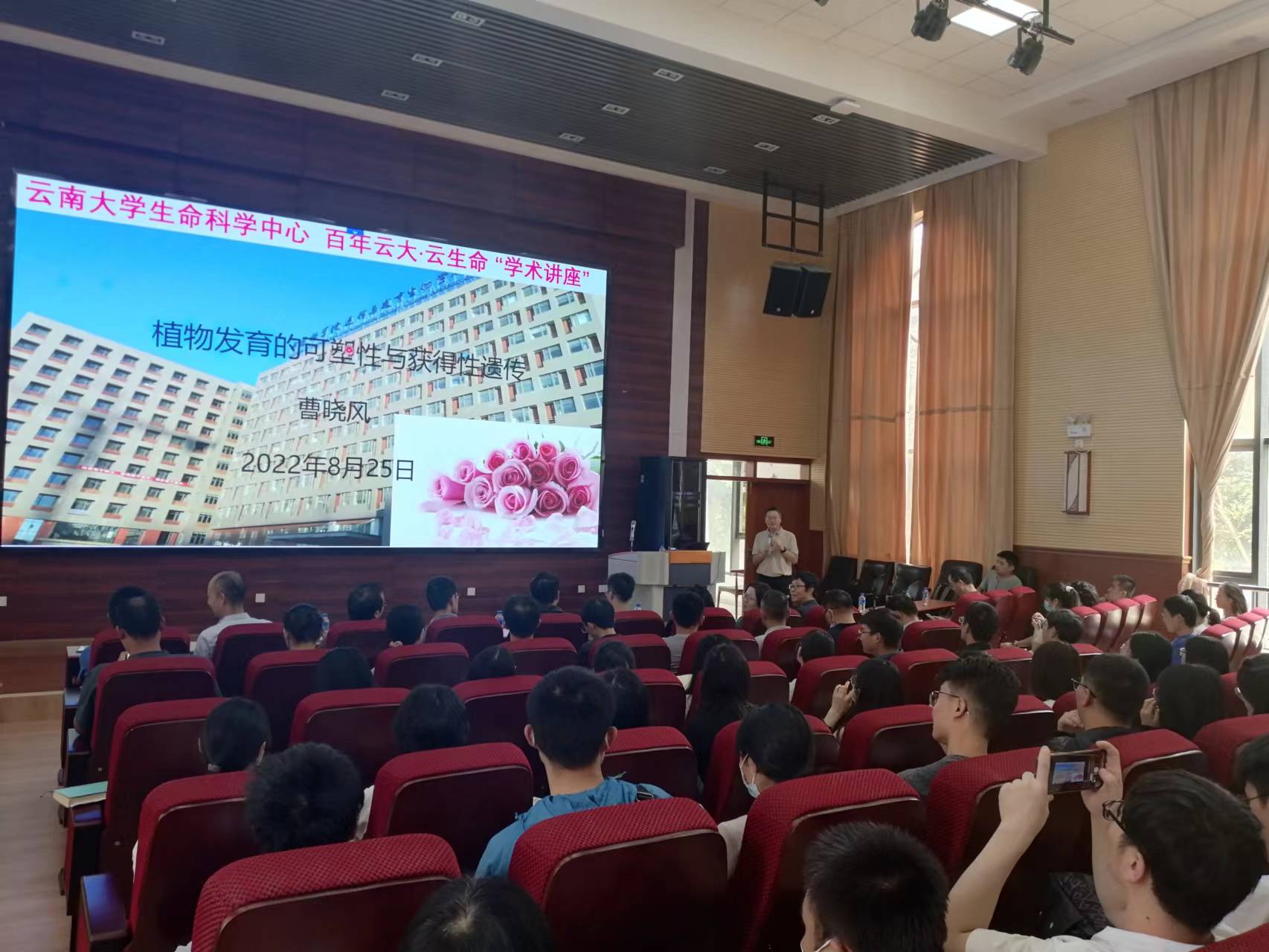 2022年8月25日下午,应太阳成集团tyc122ccvip生命科学中心杨崇林教授邀请,中国科公司遗传与发育生物学研究所曹晓风院士于太阳成集团tyc122ccvip1栋报告厅作了题为“植物发育可塑性与获得性遗传”的学术报告。讲座由生命中心杨崇林教授主持,来自太阳成集团tyc122ccvip及其他相关院系的众多师生现场聆听了报告。