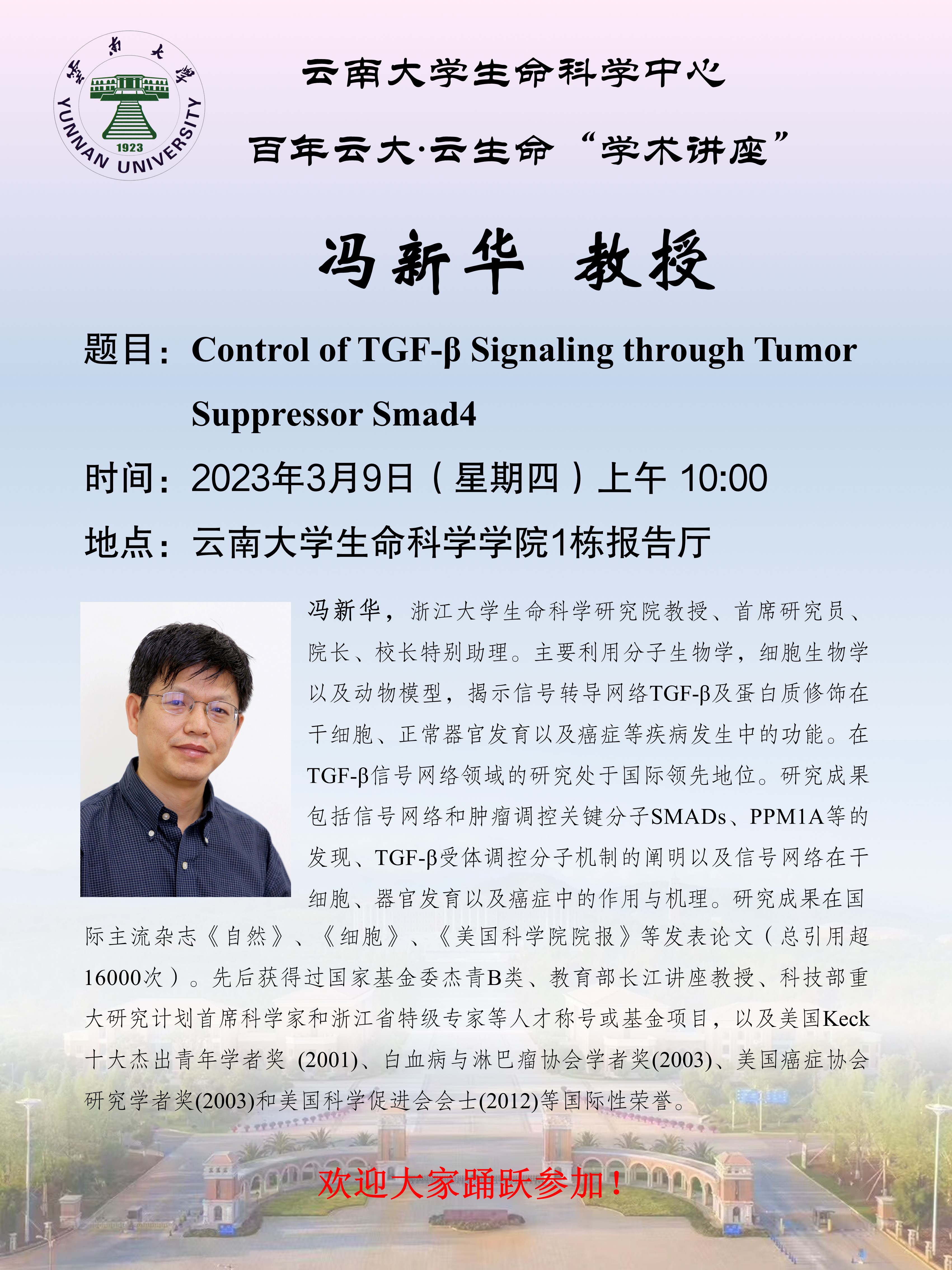 当前位置: 首页>>讲座信息>>学术讲座>>正文 Control of TGF-β Signaling through Tumor Suppressor Smad4 发布时间: 2023年03月08日 15:06 阅读次数: