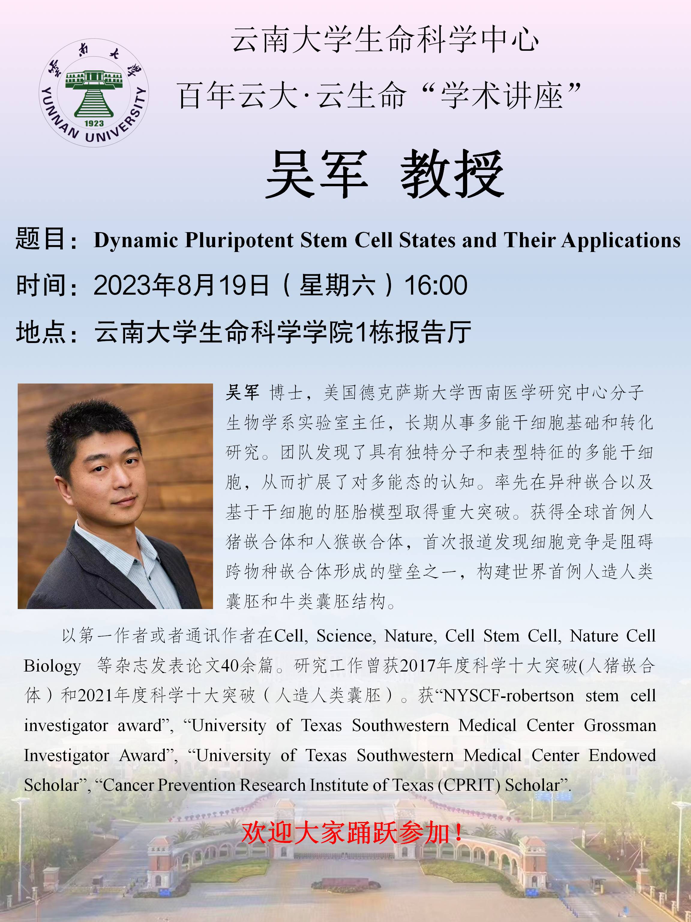 当前位置: 首页>>讲座信息>>学术讲座>>正文 Dynamic Pluripotent Stem Cell States and Their Applications 发布时间: 2023年08月10日 16:06 阅读次数: