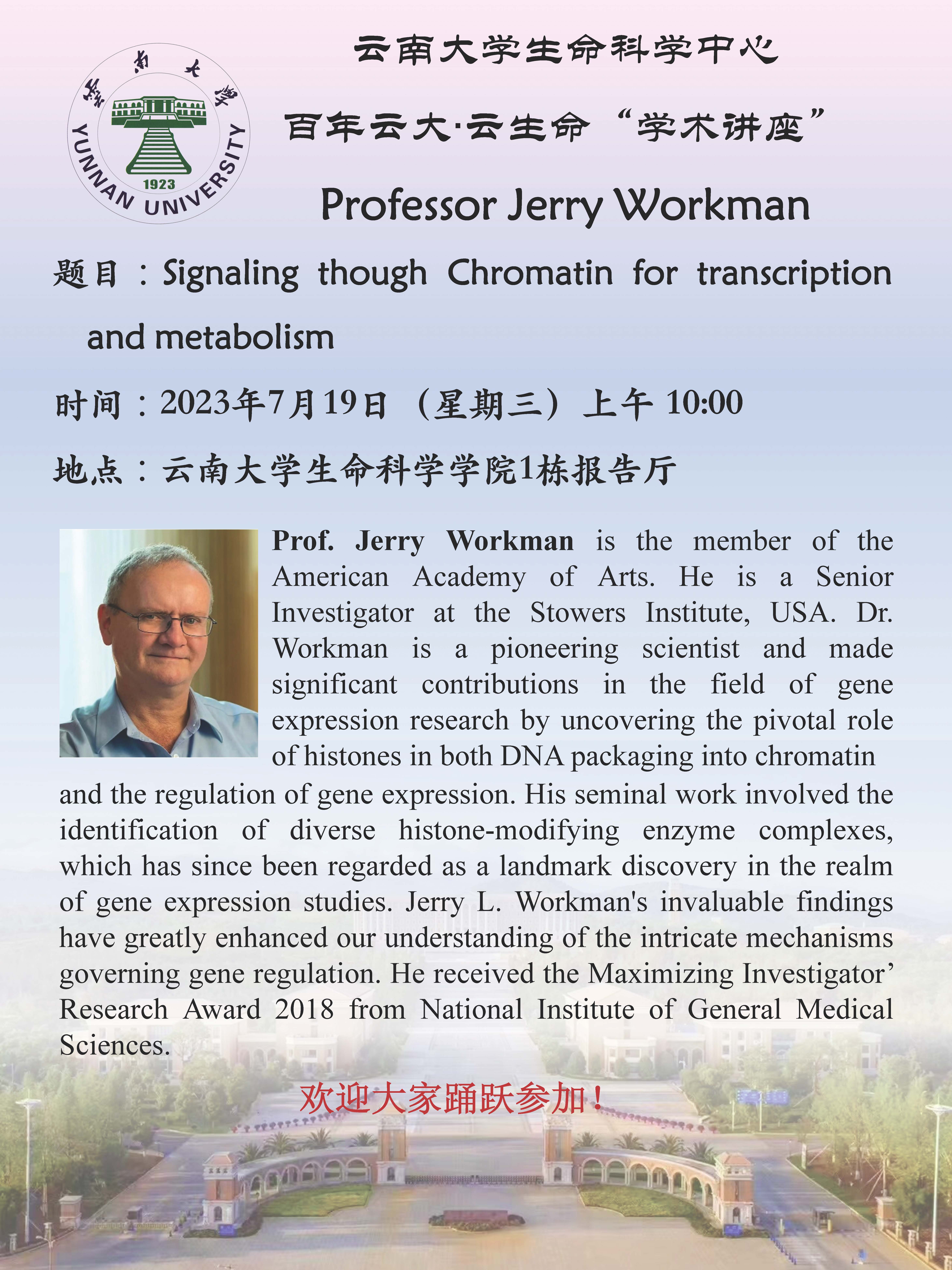 当前位置: 首页>>讲座信息>>学术讲座>>正文 Signaling though Chromatin for transcription and metabolism 发布时间: 2023年07月19日 15:21 阅读次数: