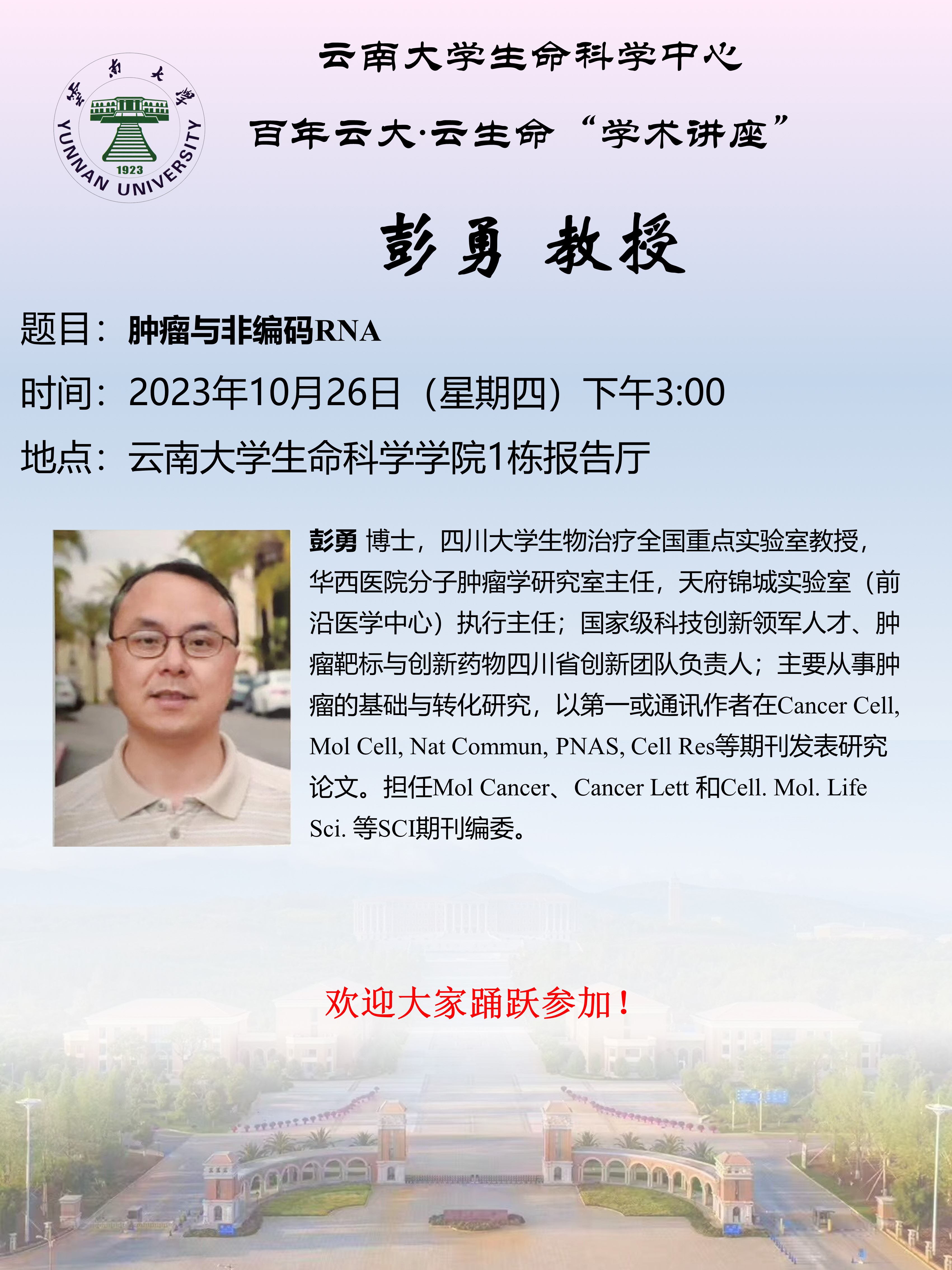 栏目导航 导航 栏目导航 首页 关于我们 太阳成集团tyc122ccvip简介 党政工团 行政办公 新闻通知 太阳成集团tyc122ccvip新闻 通知公告 团队队伍 细胞生物学 生物化学与分子生物学 遗传学 微生物学 生物信息学 进化生物学 当前位置: 首页>>讲座信息>>学术讲座>>正文 肿瘤与非编码RNA 发布时间: 2023年10月25日 16:00 阅读次数: